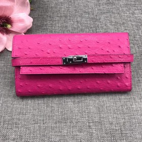 HERMES kelly bag钱包手包两用款 型号:H361鸵鸟纹(粉色) 材质:鸵鸟纹皮 尺寸:20cm*11cm
