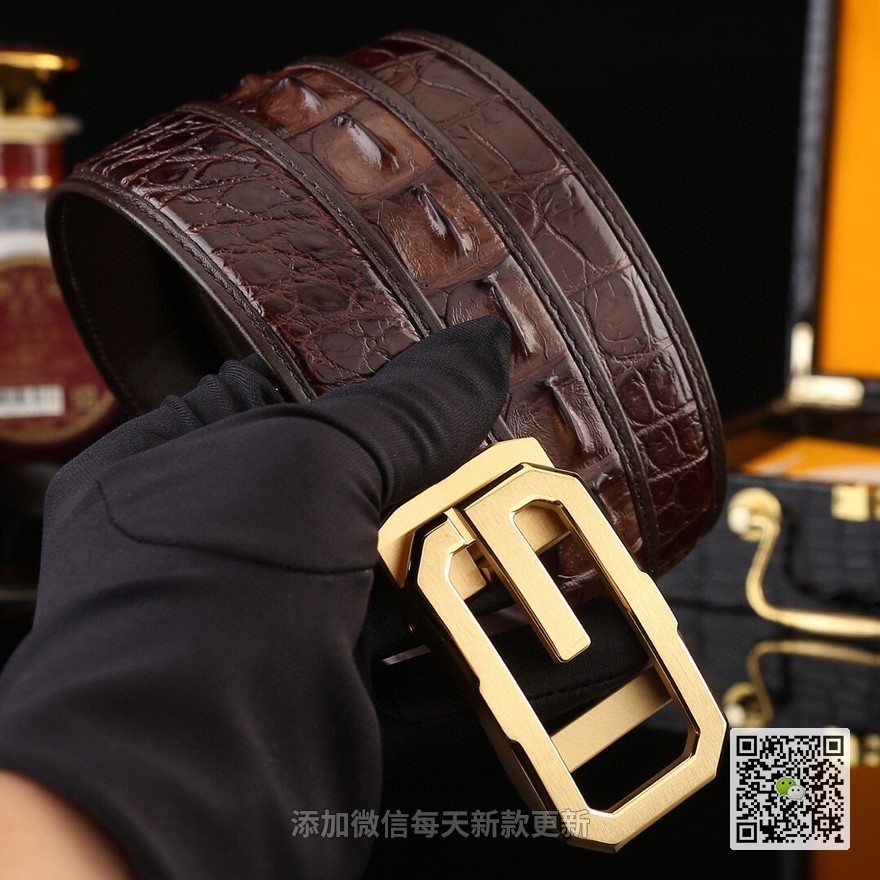当前位置: 首页 > 腰带 > 《古奇》采用野生进口真鳄鱼骨皮自动皮带搭配精致电镀自动钢扣头.底皮原版头层牛皮宽3.4cm做工精细,百搭,上身超好,品质一流!高端客户入!