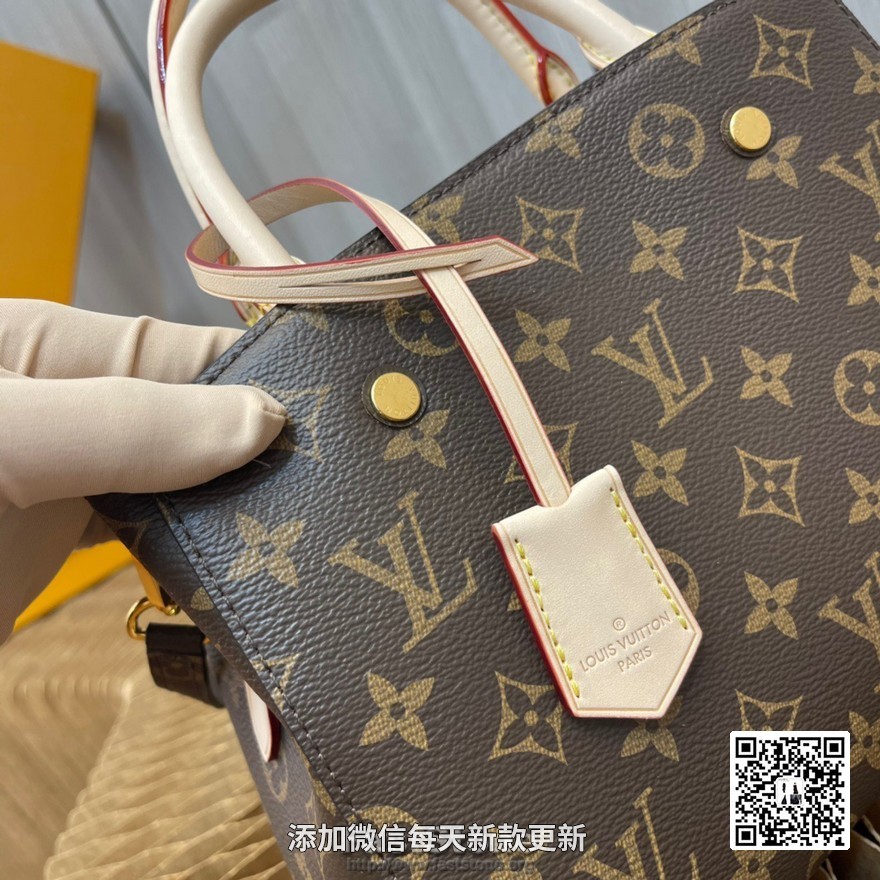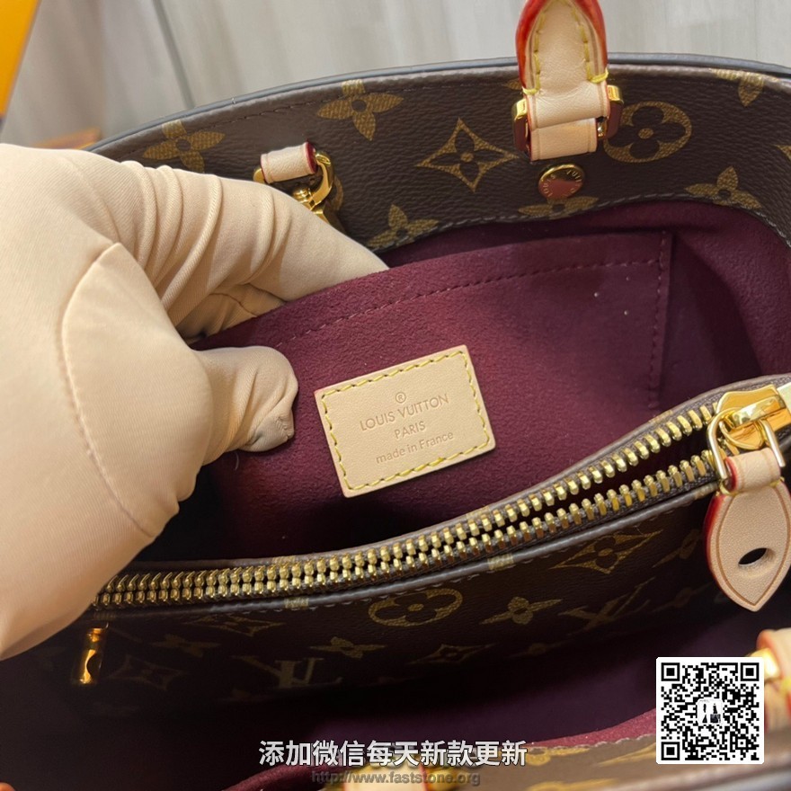 顶级原单 独家实拍!M41055老花小号蒙田包 以标志性 Monogram 帆布制成的 Montaigne BB 手袋将俏皮挺括的外部设计与整齐有序的包内空间结合在一起,是商务包款的理想之选。 这款手袋配有一条超长的可拆卸背带,既可手提、臂挽,亦可斜背,打造时尚扮相。29.0 x 20.0 x 13.0 cm (长 x 高 x 宽) - 可脱卸斜背肩带- 天然牛皮饰边- 皮质钥匙罩- 闪亮的金色黄铜配件- 酒红色超细纤维内衬- 1 个带有挂锁的中部拉链隔层,2 个宽隔层、2个手机袋、1 个扁平袋- 包底有保护性的铆钉