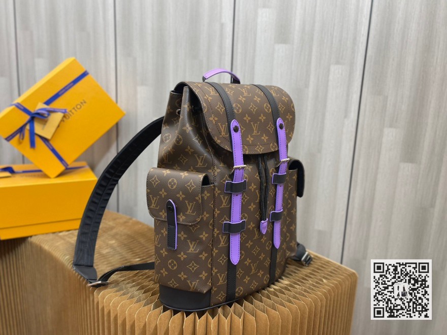 顶级原单【独家背景】款号 M46272老花配紫M41379 Christopher 小号双肩包拥有宽敞的包内空间和引人注目的外观,是一款非常适合户外使用的日常包款。 其富有吸引力的设计风格颇具品味。41x48x13cm
